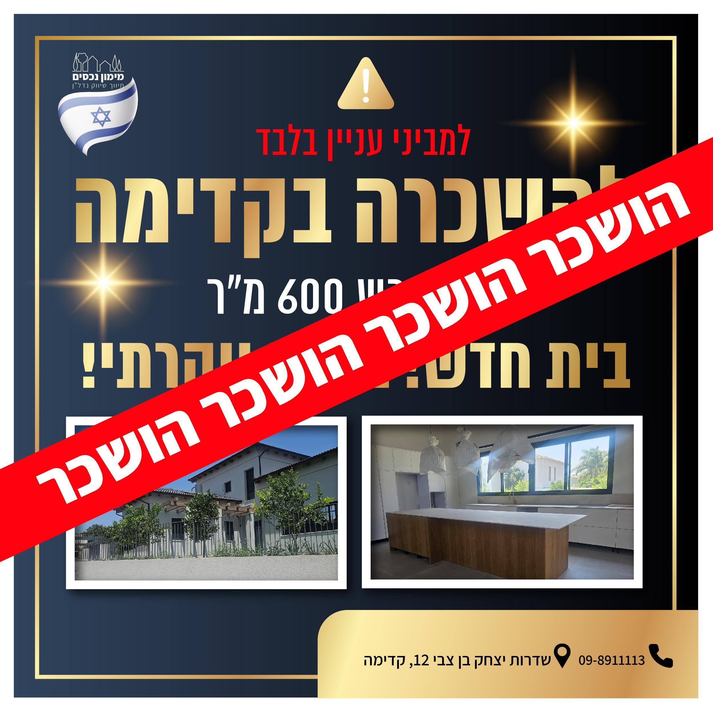 השכרה וילה בקדימה צורן - מימון נכסים